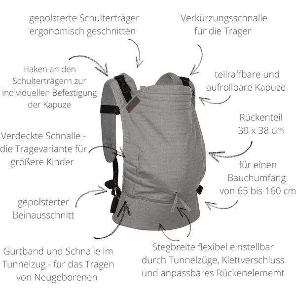 - als Bauchtrage, Hüfttrage und Rückentrage einsetzbar